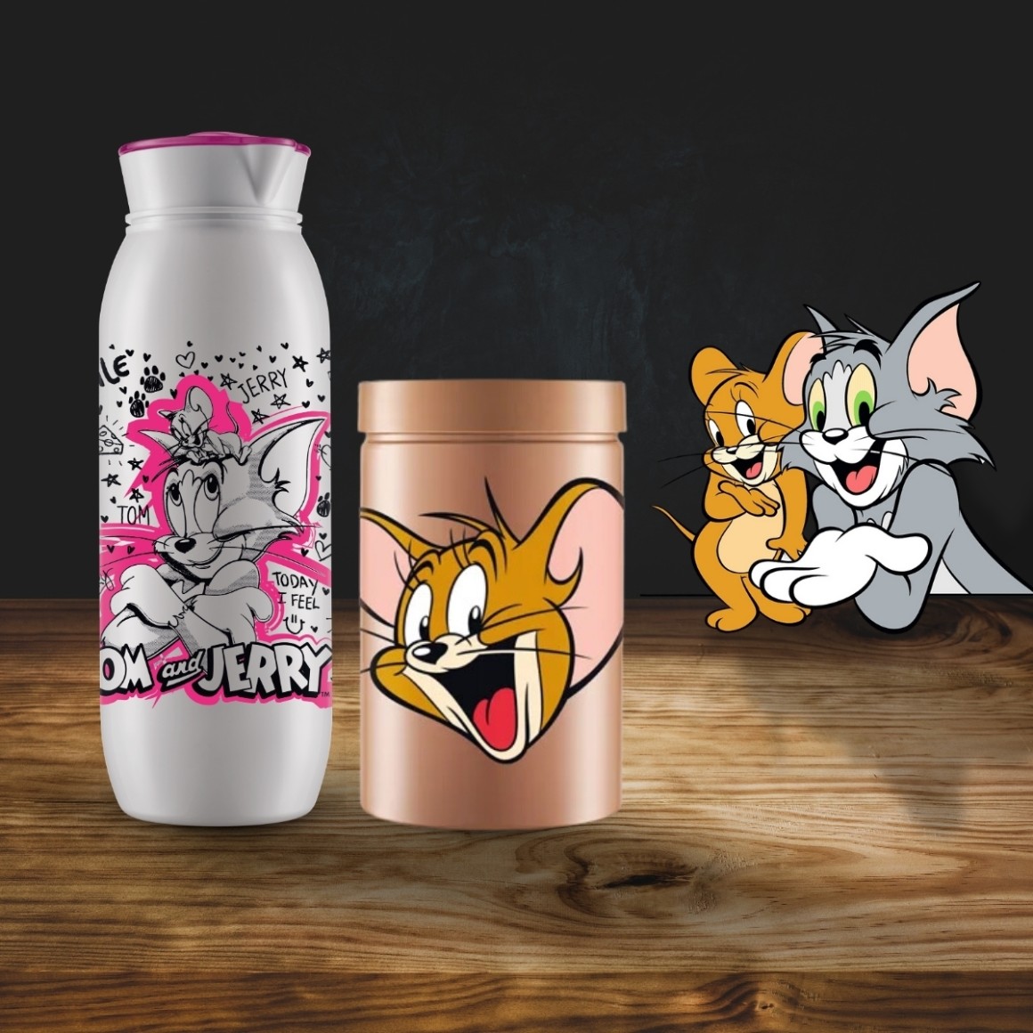 Design Temático: Ambos os produtos apresentam os icônicos personagens Tom & Jerry, trazendo um toque de nostalgia e diversão ao seu cotidiano.