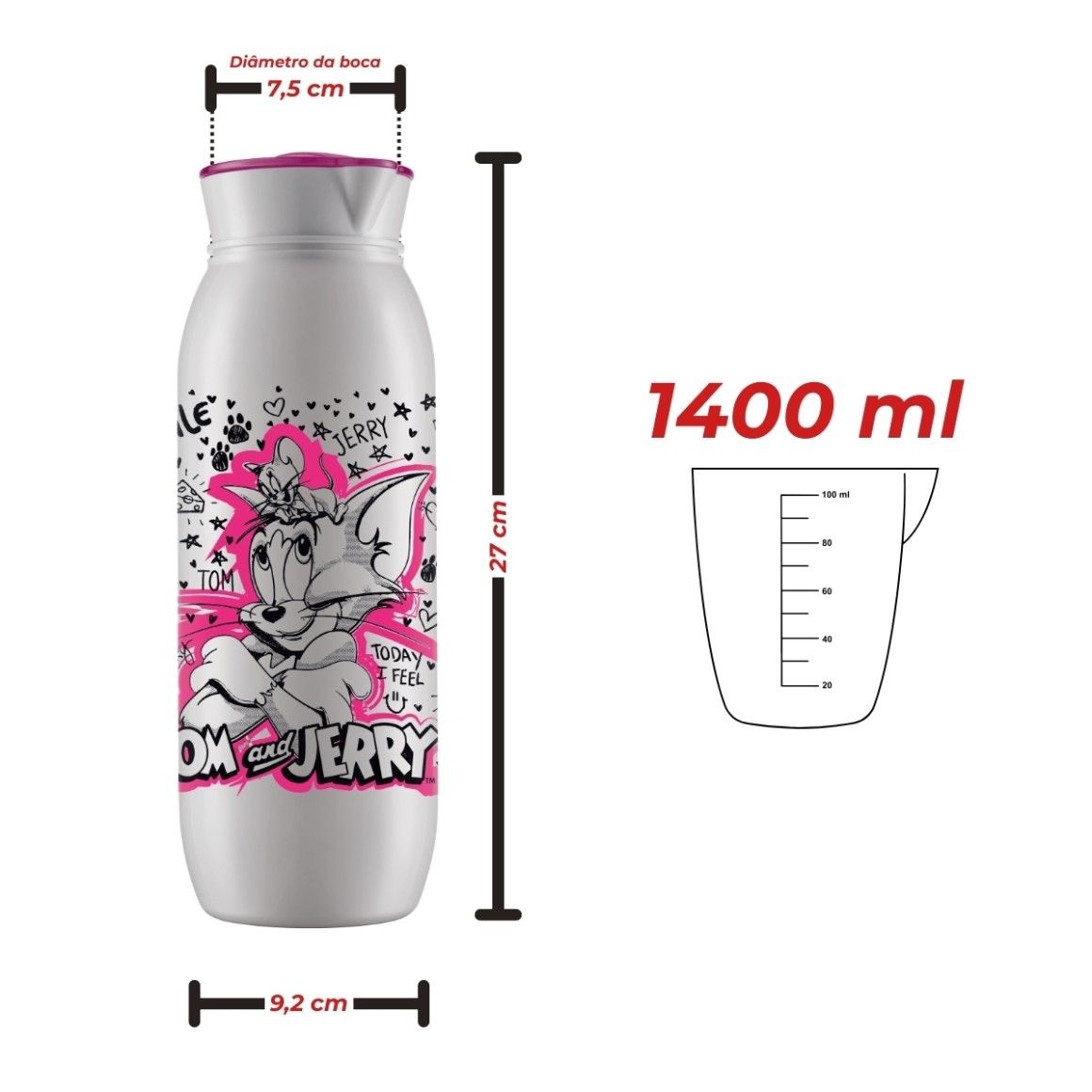 Descrição: Com um design divertido e leve, esta jarra é ideal para servir bebidas. A estampa dos personagens Tom & Jerry adiciona um charme extra à sua mesa, tornando cada refeição mais divertida.