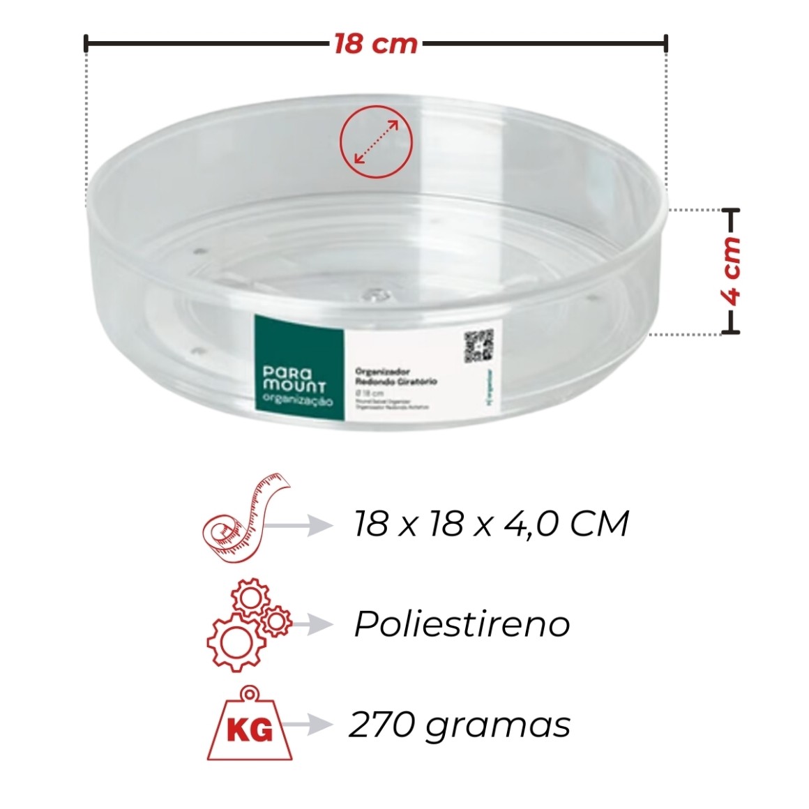 Adicione agora o Organizador Diamond Giratório 18 x 18 x 4,0 CM em Poliestireno Transparente à sua rotina de organização e desfrute de um espaço mais organizado e funcional.
