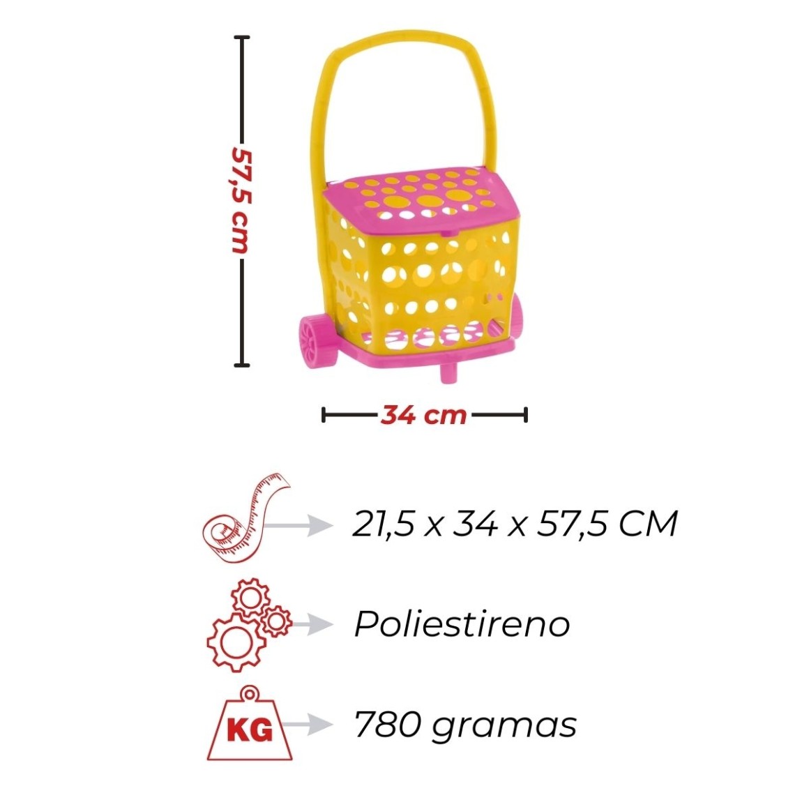Dimensões: 21,5 x 34 x 57,5 cm