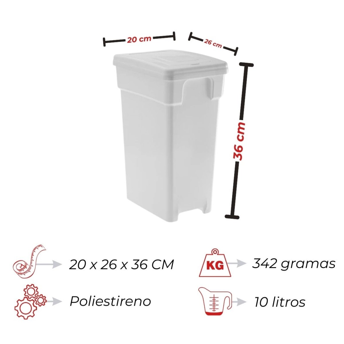 Lixeira Selecta Click Branca de 10 Litros - 20 x 26 x 36 cm da Paramount em Poliestireno