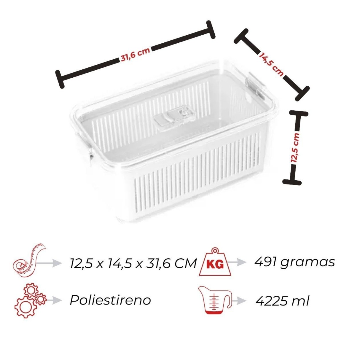 - Vedação Hermética: A tampa com sistema de vedação segura garante a preservação do frescor dos alimentos, evitando a entrada de ar e umidade.