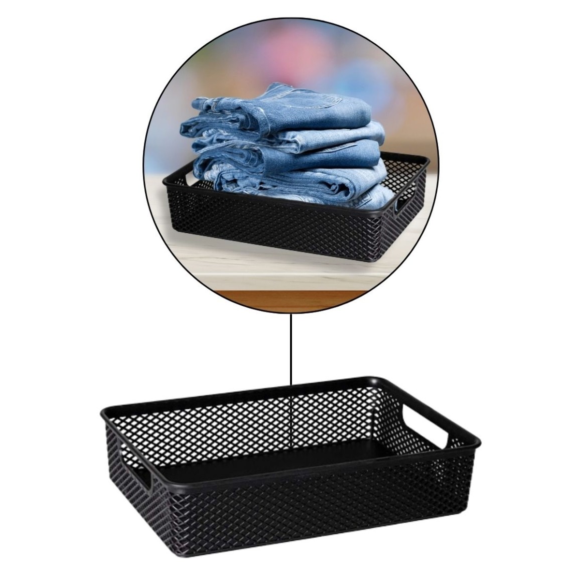 O Cesto Organizador Com Tampa Preto Línea Paramount oferece uma solução elegante e prática para manter seus pequenos itens sempre organizados.
