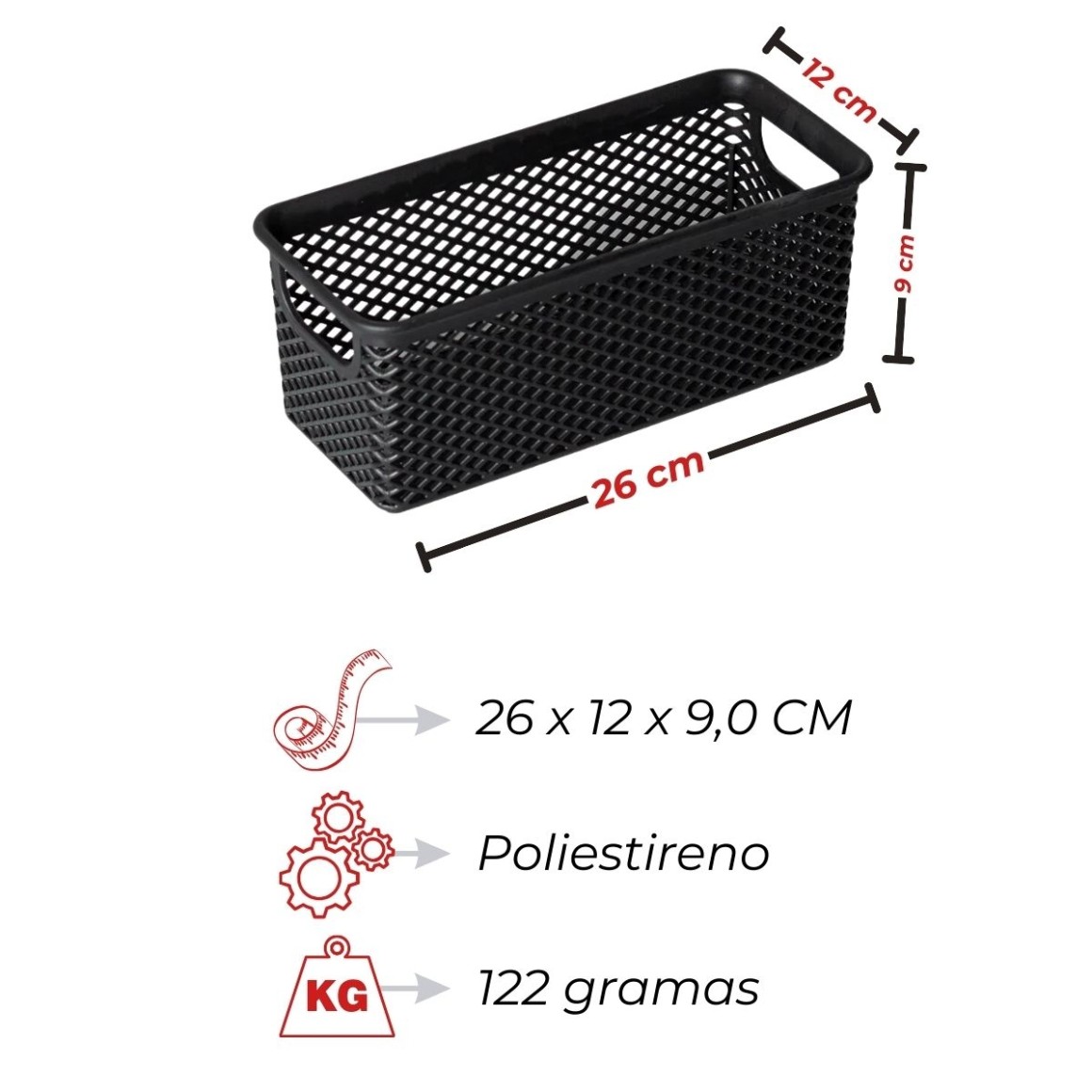 - Dimensões: 26x12x9 cm