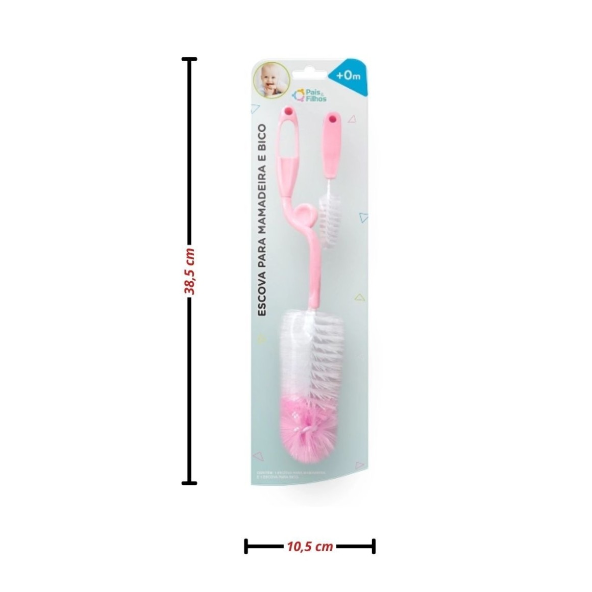 Escova para Mamadeira e Bico Rosa Linha Baby Pais & Filhos