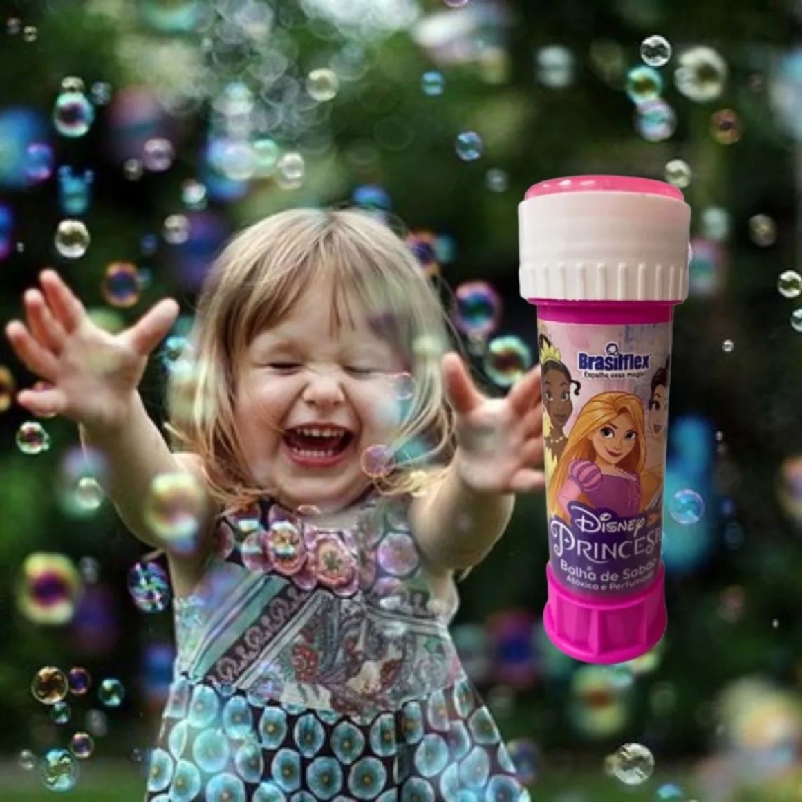 Transforme qualquer ocasião em um momento mágico com o Lança Bolhas 60mL Princesas Disney Com Jogo! A diversão e a imaginação estão garantidas!