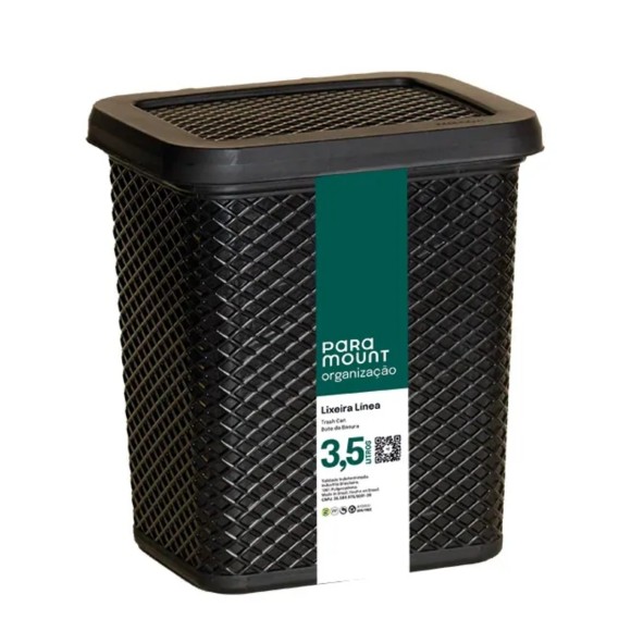 Lixeira Línea com Pedal de 3,5 litros Preta da Paramount
