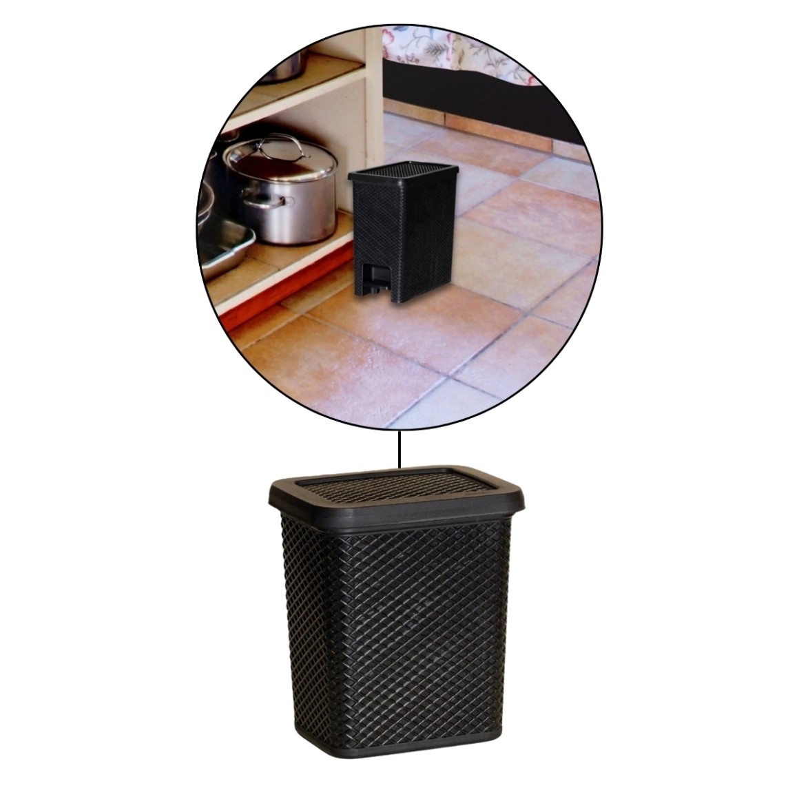 Fabricada em poliestireno preto de alta qualidade, esta lixeira é resistente e durável, garantindo uma longa vida útil. Seu acabamento em preto confere um visual moderno e sofisticado, complementando uma variedade de estilos de decoração.