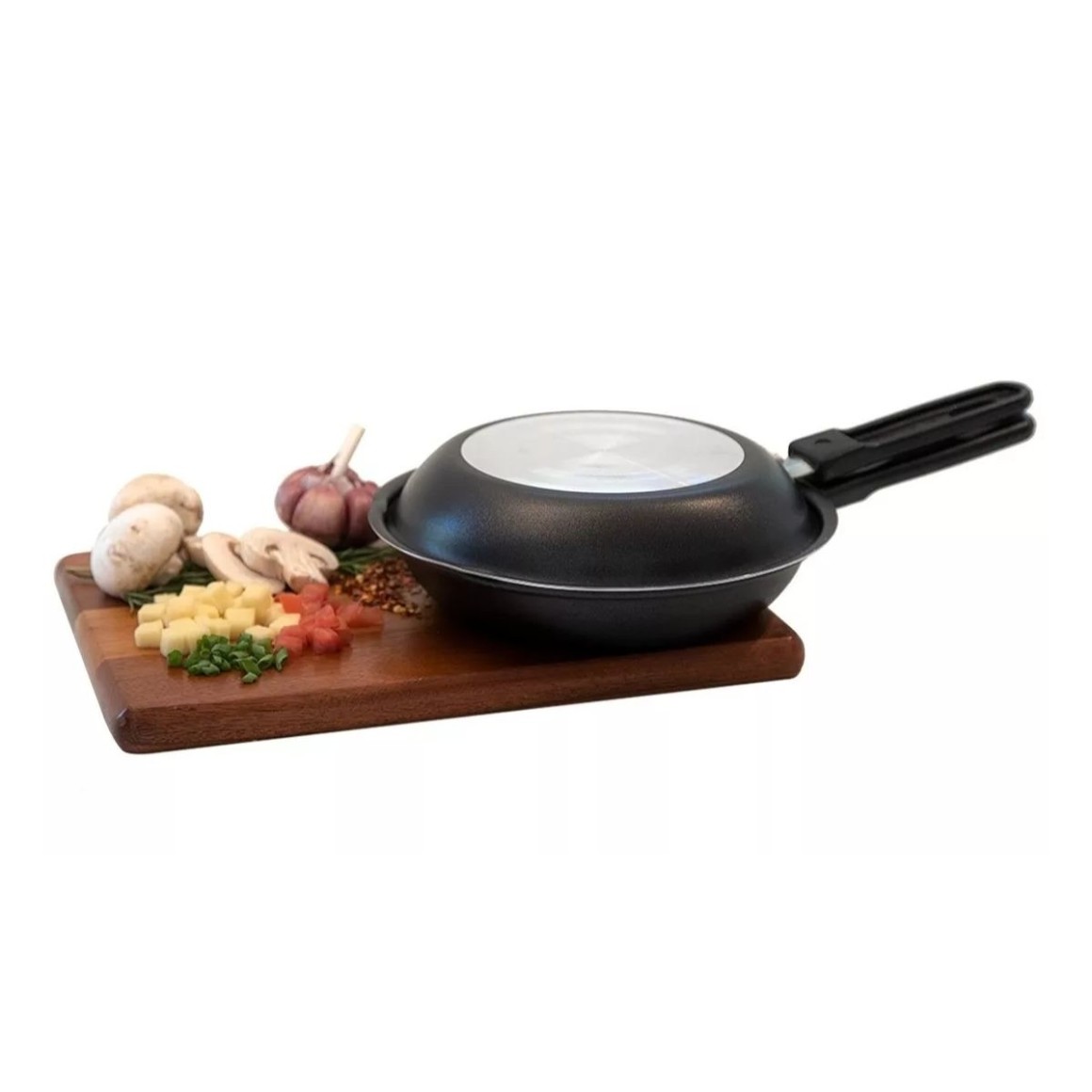 • Estrutura: Composta por duas frigideiras que se conectam para virar alimentos com facilidade.
