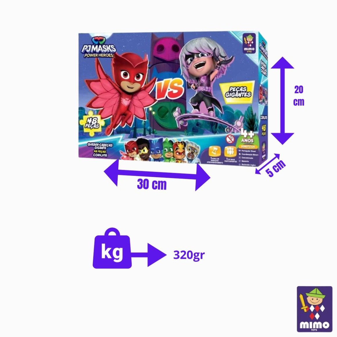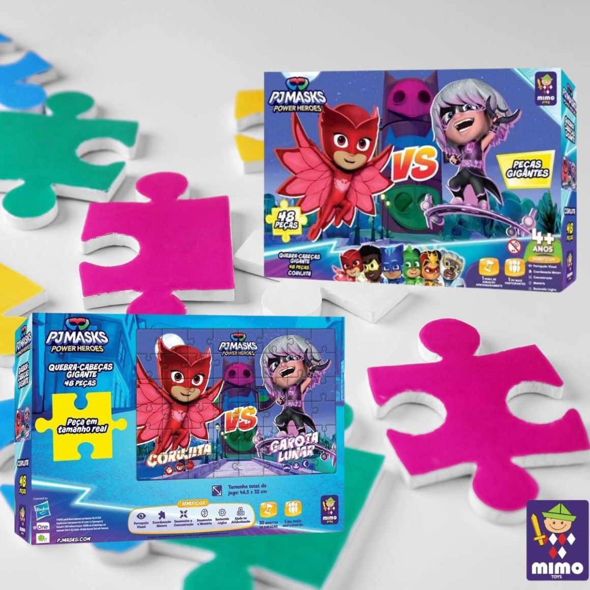 Descubra a diversão e o aprendizado com o Quebra-Cabeça PJ Masks Corujita da MIMO Toys! Com 48 peças grandes, este quebra-cabeça é perfeito para crianças a partir de 4 anos. Aprenda brincando com os heróis pré-escolares mais queridos da série de TV Disney Júnior!