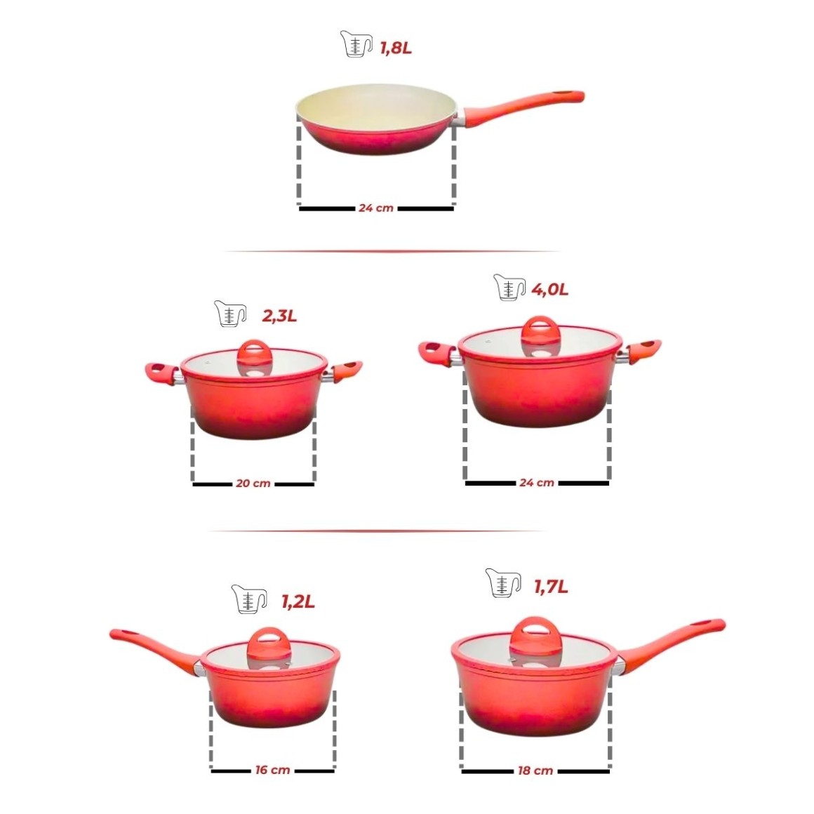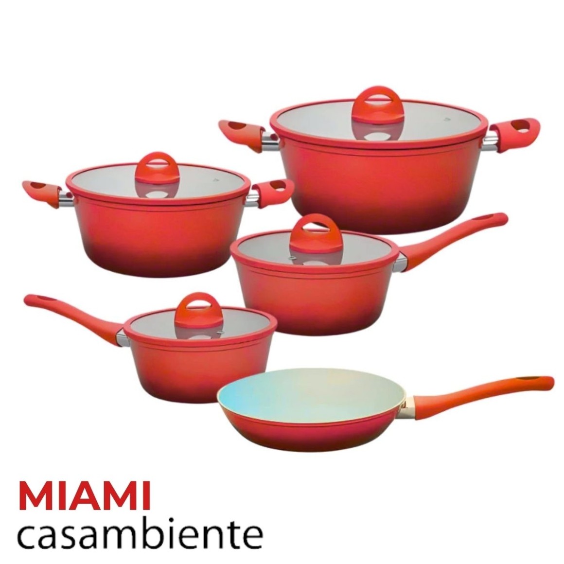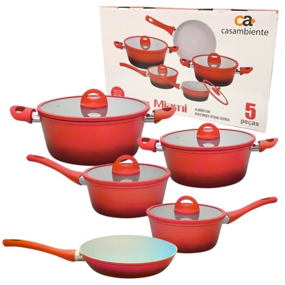 Jogo de Panelas de Indução Cerâmico Miami Vermelho 5 Peças