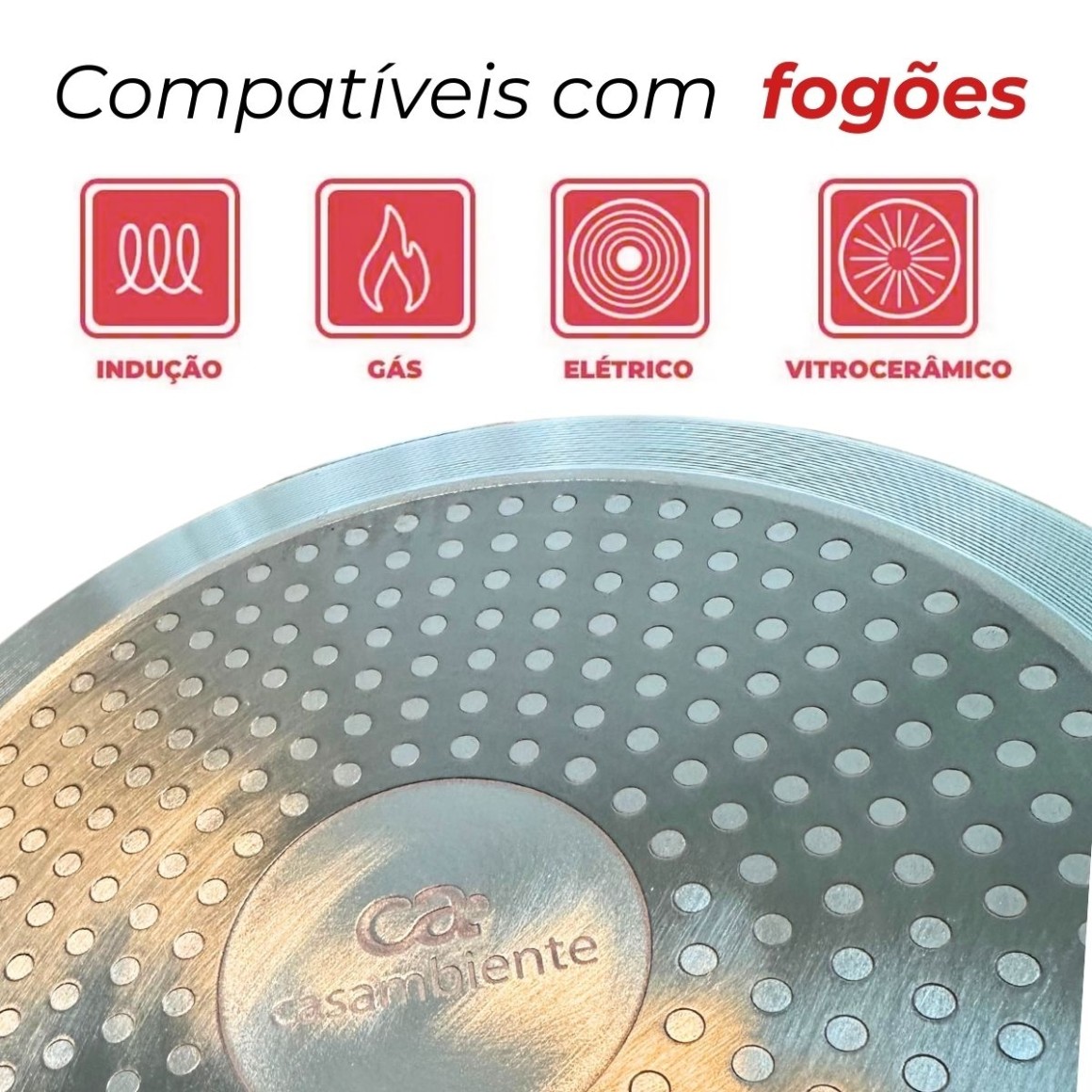 Compatível com Indução: Ideal para diversos tipos de fogões: gás, elétrico, vitrocerâmico e indução.