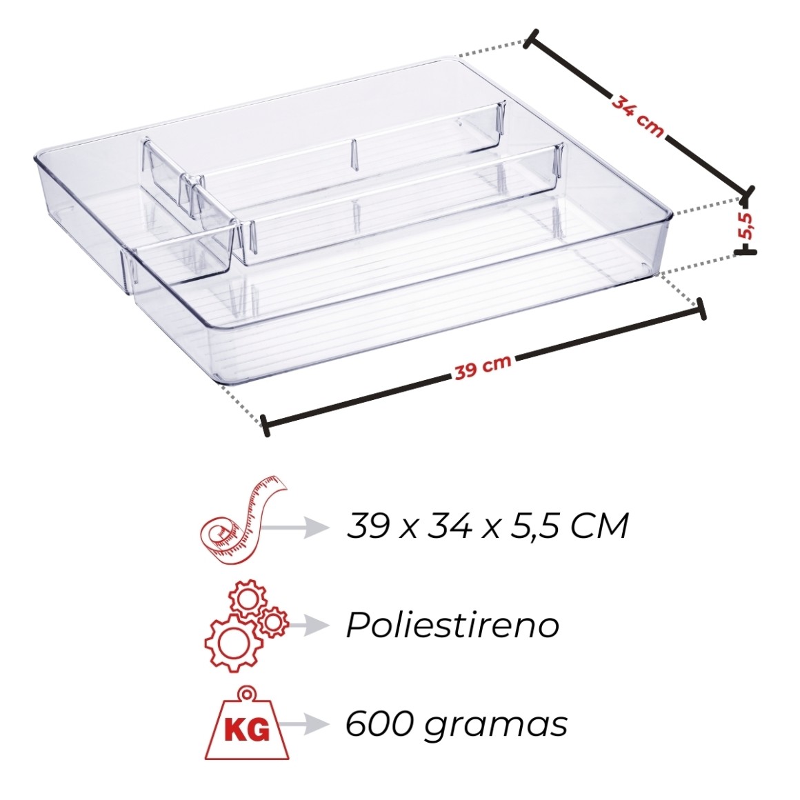 Material: Poliestireno transparente
