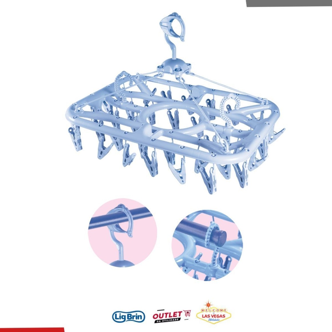 Descubra a praticidade do nosso Varal Multiuso com 23 Prendedores, ideal para suas roupas íntimas e peças pequenas!