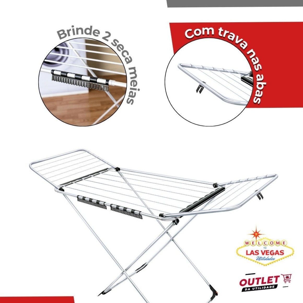 Eleve a eficiência da sua lavanderia com o Varal de Chão Secalux Big com Abas Alumínio, um modelo versátil e super resistente!