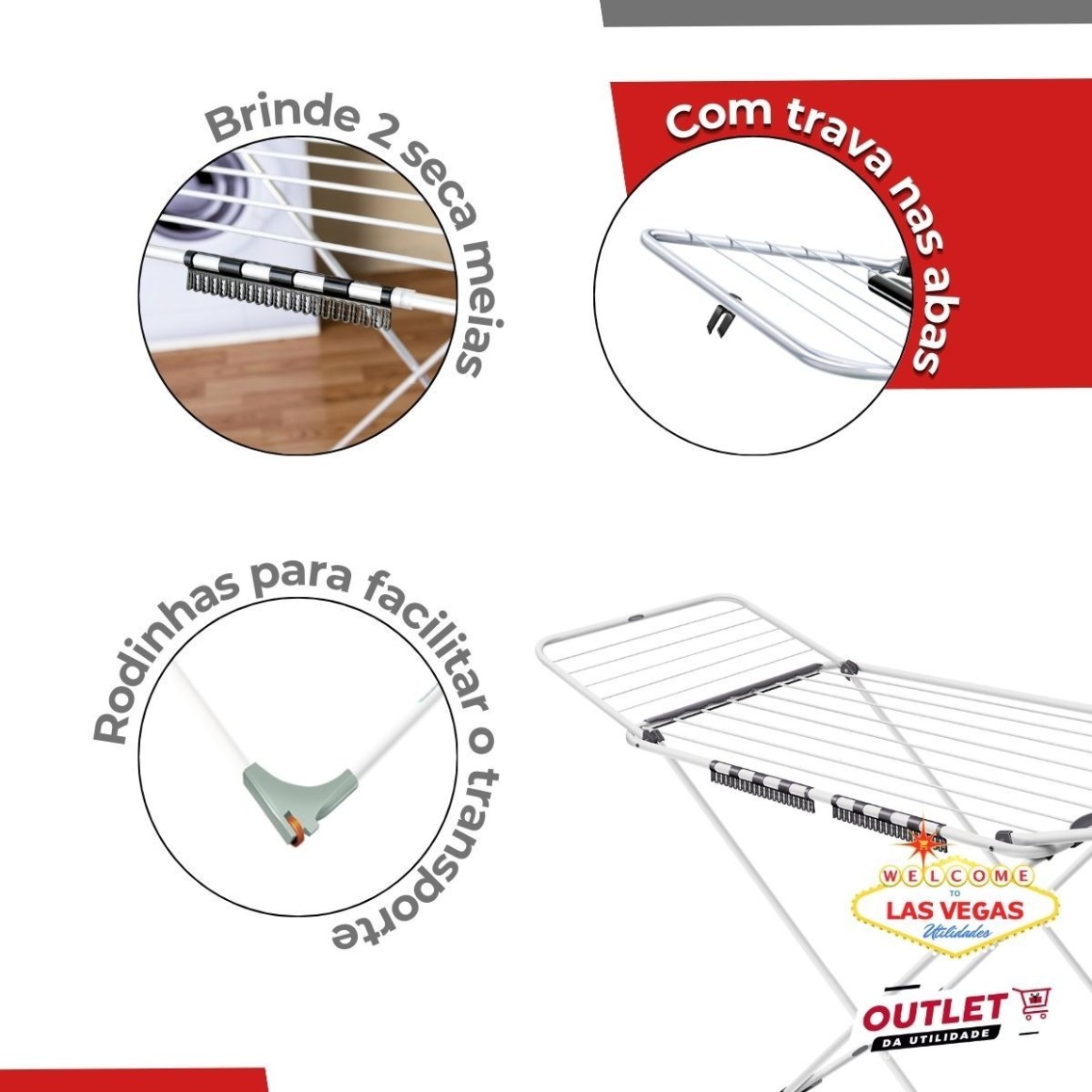 Elevate a eficiência da sua lavanderia com o Varal de Chão Secalux Big com Abas Aço, um modelo versátil e super resistente!